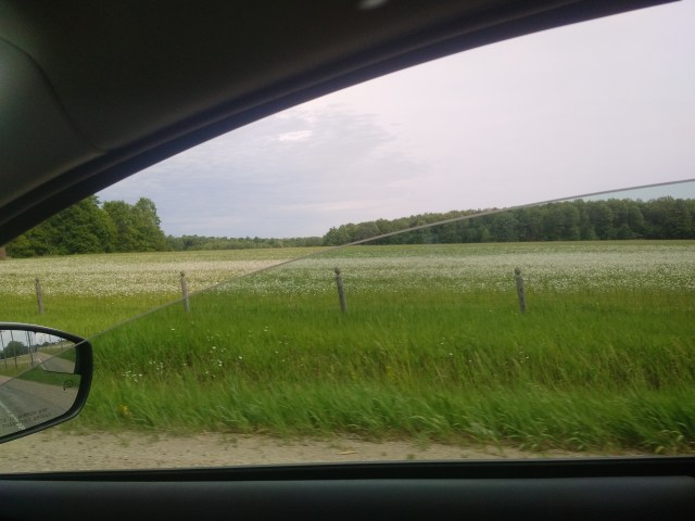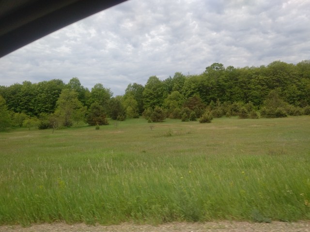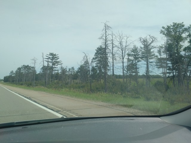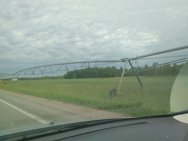 Fairly standard Michigan countrysideI really thought I grabbed a great picture of a crop duster taking off but seem to be imagining thingsIt’s just fun to say “Pinconning”A neat looking (to me!) dilapidated barnI like trees and such