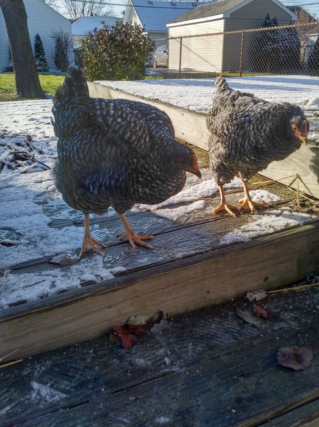 After unsuccessful attempts to get Amelia to dust bathe, I resorted to manually flipping her around in the dirt and sprinkling dust over the affected areas, under her wings (which, alarmingly, were totally barren of feathers!) and near her tail/vent (the area where her….waste exits).